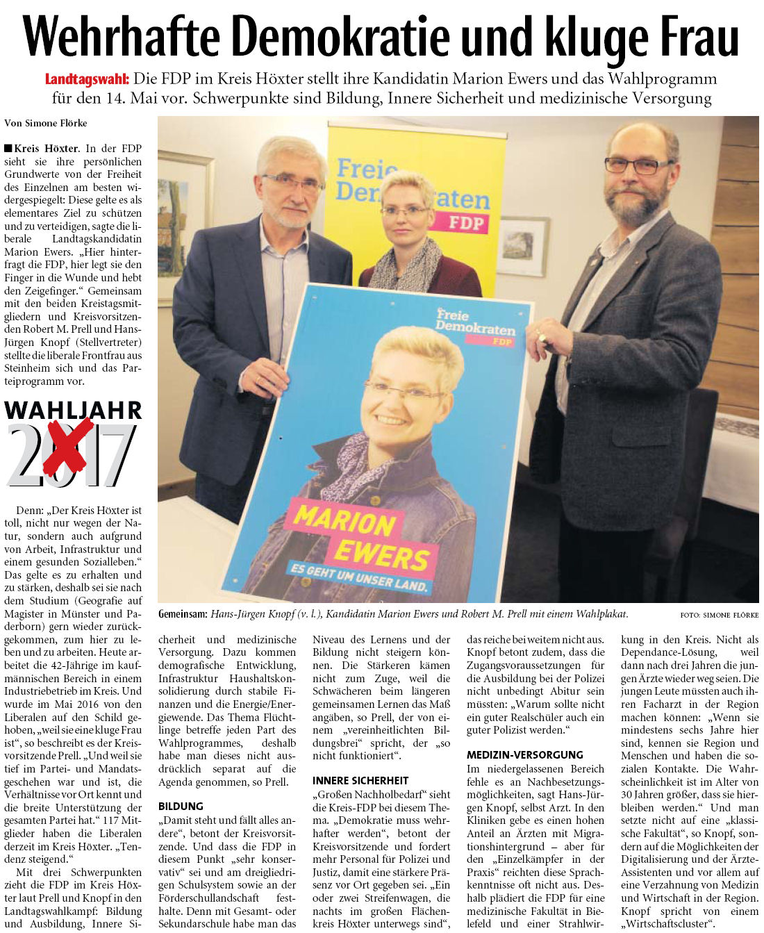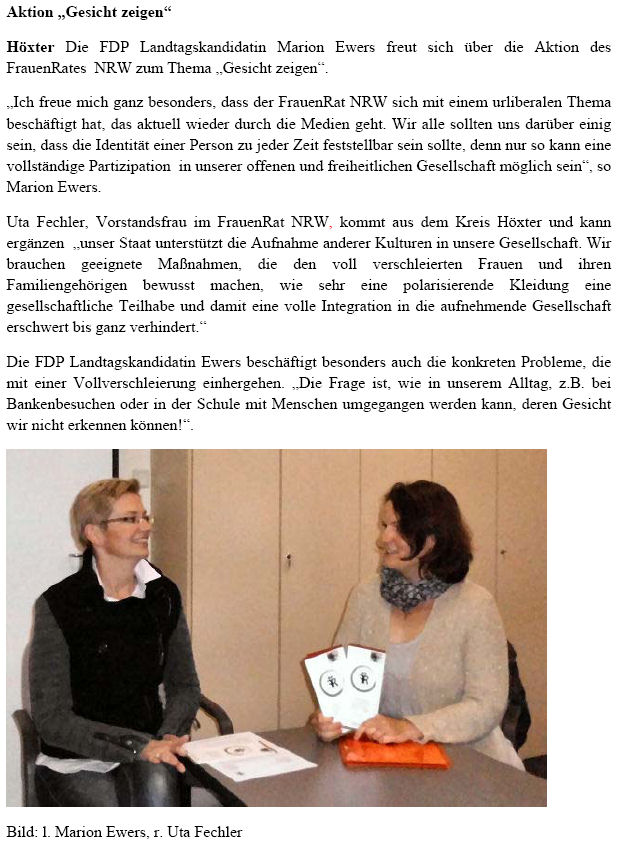 Mit der Landtagskandidatin Marion Ewers wurde das Wahlprogramm der Freien Demokraten im Kreis Höxter der lokalen Presse vorgestellt. Die Schwerpunkte konnten in einem ausführlichen Gespräch verdeutlicht werden. Photo: gs.