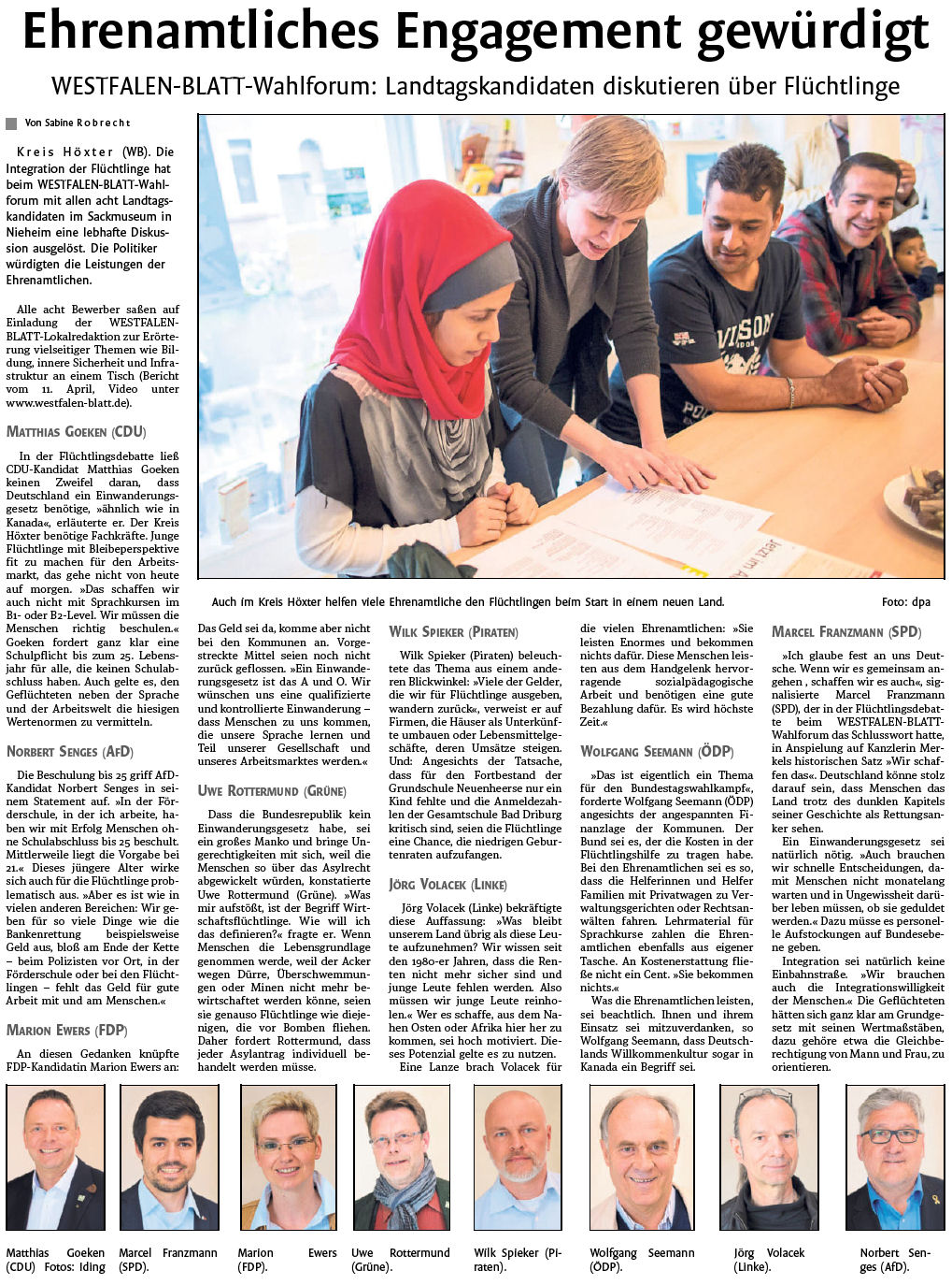 Im Sackmuseum Nieheim befragte das Westfalenblatt alle Landtagskandidaten zu Themen, die die Leser ausgesucht hatten. Zusätzlich wurde ein kurzer Video-Clip aller Bewerber aufgenommen. Photo: rmp.