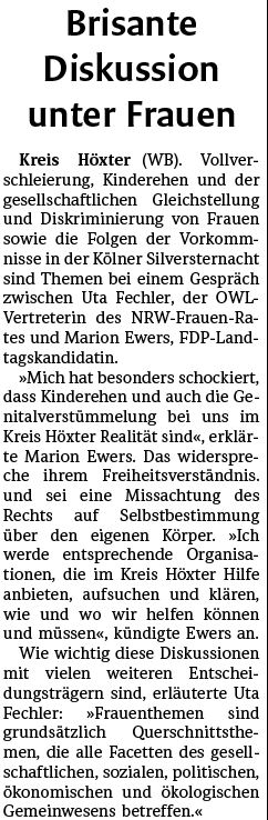 Der NRW FrauenRat, als Dachverband von 60 Frauenverbänden aller gesellschaftlichen Bereiche, vertritt die Interessen von mehr als zwei Millionen Frauen in Nordrhein-Westfalen. "Frauenthemen" sind Querschnittsthemen über alle Facetten des gesellschaftlichen, sozialen, politischen, ökonomischen und ökologischen Gemeinwesens. Die Vorkommnisse in Köln, die aktuelle Diskussion über Vollverschleierung, Kinderehen, aber auch gesellschaftliche Gleichstellung bzw. Diskriminierung sind nur einige Themen, die in der politischen Diskussion Gehör finden müssen.
