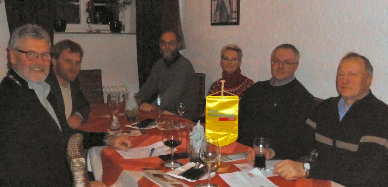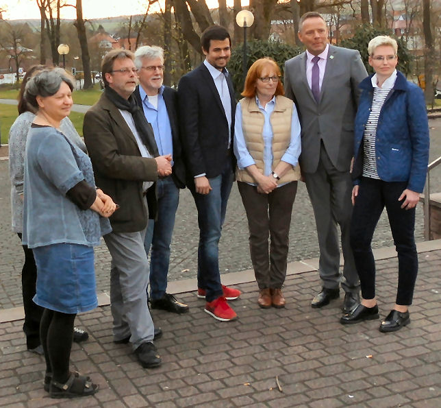 V.l. Marion Ewers, Regina Lachnicht Schatzmeisterin, Melanie Eichert, Rudi Ryll stv. Vorsitzender, Robert M. Prell, Frank Hiller Schriftführer, Gerd Siegmund Ortsverbandsvorsitzender Steinheim, Klaus-Dieter Fischer Beisitzer. Photo: nn.