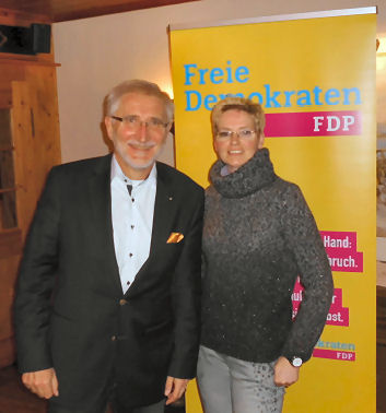 Die Kandidatin Marion Ewers und der Kreisvorsitzende Robert M. Prell freuen sich im Kreishaus über das Ergebnis der FDP. Photo: nn.