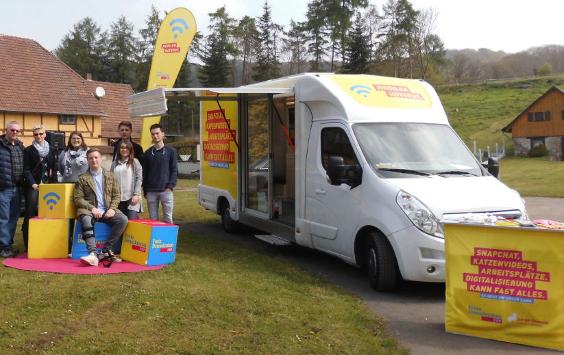 Mit dem Wahlkampfbus der FDP und Unterstützung der Julis warb unsere Landtagskandidatin Marion Ewers für die Freien Demokraten. Viel Besucherverkehr bei gutem Wetter und dem sehr umfangreichen Programm auf dem Schlossgelände. Photo: rmp.