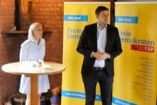 Sommerfest des Kreisverbandes Gütersloh in Harsewinkel. Der Kreisvorsitzende Patrick Bücker konnte viele Gäste aus der Region und das neue Landtagsmitglied Daniela Beihl MdL begrüßen. Erst seit 14 Tagen im „Amt“ berichtete“ Daniele Beihl doch schon umfassenden und interessant von den Aktivitäten der Fraktion. Mit nunmehr vier Abgeordneten im Landtag NRW ist OWL so gut wie noch nie in Düsseldorf vertreten. Fotos: Robert M. Prell.