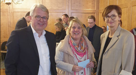 Unsere Bezirksdelegierten v.l.: Dr. Thomas Fiege, Martin Hillebrand, Marion Ewers, Gerd Siegmund, Jörg Köhler, Gerda Scheips. Bild oben: Der Bezirksvorsitzende Frank Schäffler mit Martina Hannen und der Ministerin.