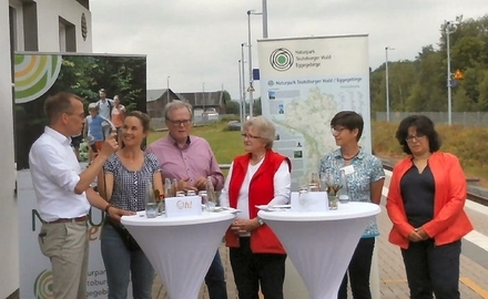 Im Rahmen des Naturparkes „Teutoburger Wald Eggegebirge“ wurde am Bahnhof in Ottbergen ein Kindererlebnispfad eröffnet und eingeweiht. Durch das Projekt „KinderErlebniswelt, gefördert durch den Europäischen Fond für regionale Entwicklung, konnte diese Einrichtung im Zusammenhang mit der „Erlesenen Natur“ des Kreises Höxter verwirklicht werden. Verschiedene Stationen auf dem Rundweg vermitteln kindgerecht die unterschiedlichsten Naturereignisse. In einer kurzen Diskussionsrunde wurden die Entwicklung dieses Projektes und die Erwartungen daran beschrieben. 2.v.r. Birgit Hübner Geschäftsführerin und Motor des Verbandes. Zufällig auf dem Bahnsteig, Dr. Klaus Töpfer. Fotos: Robert M. Prell.