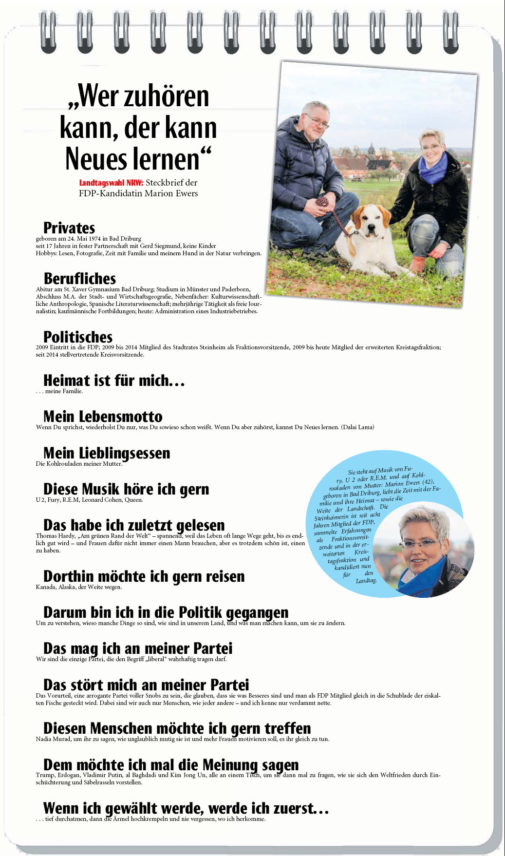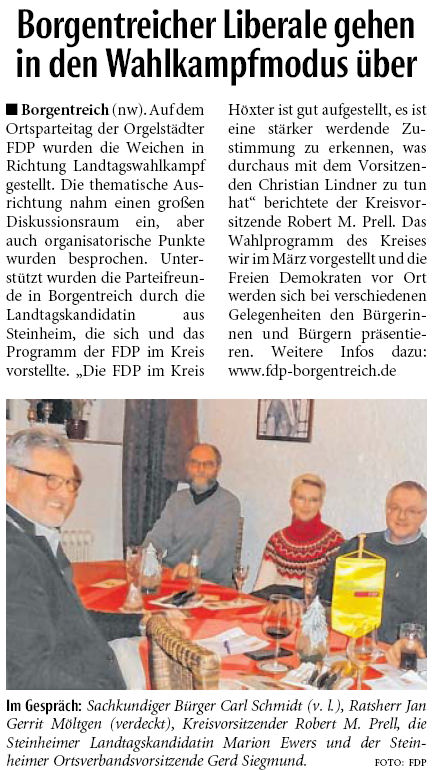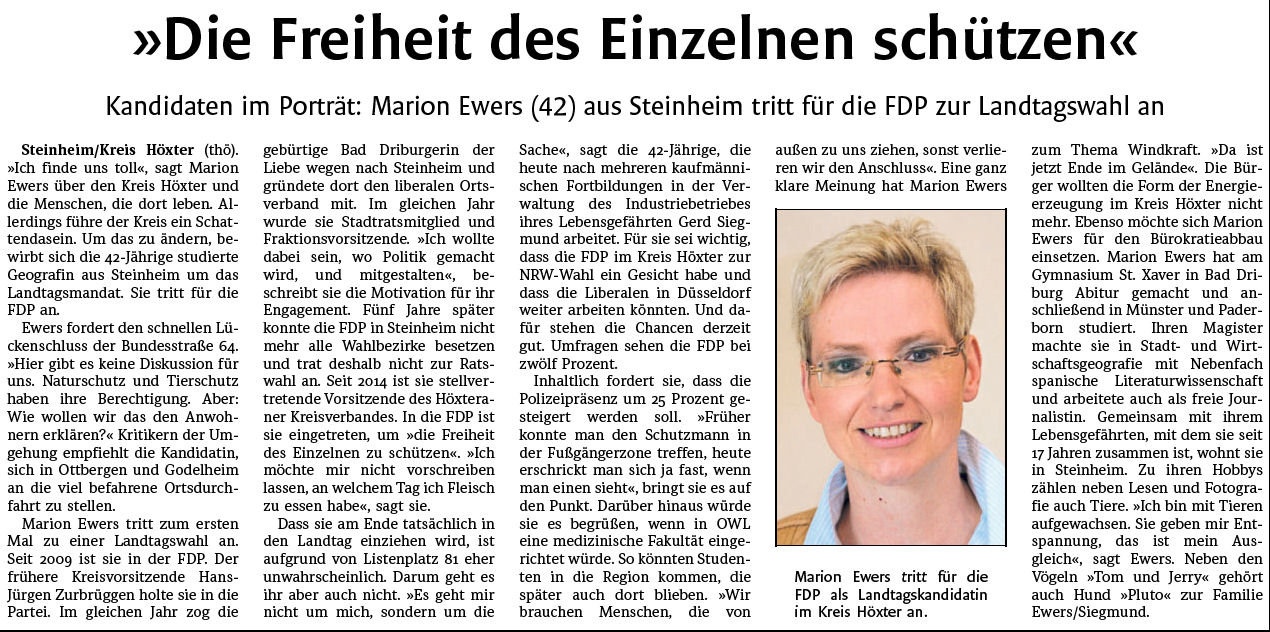 Mit der Landtagskandidatin Marion Ewers wurde das Wahlprogramm der Freien Demokraten im Kreis Höxter der lokalen Presse vorgestellt. Die Schwerpunkte konnten in einem ausführlichen Gespräch verdeutlicht werden. Photo: gs.