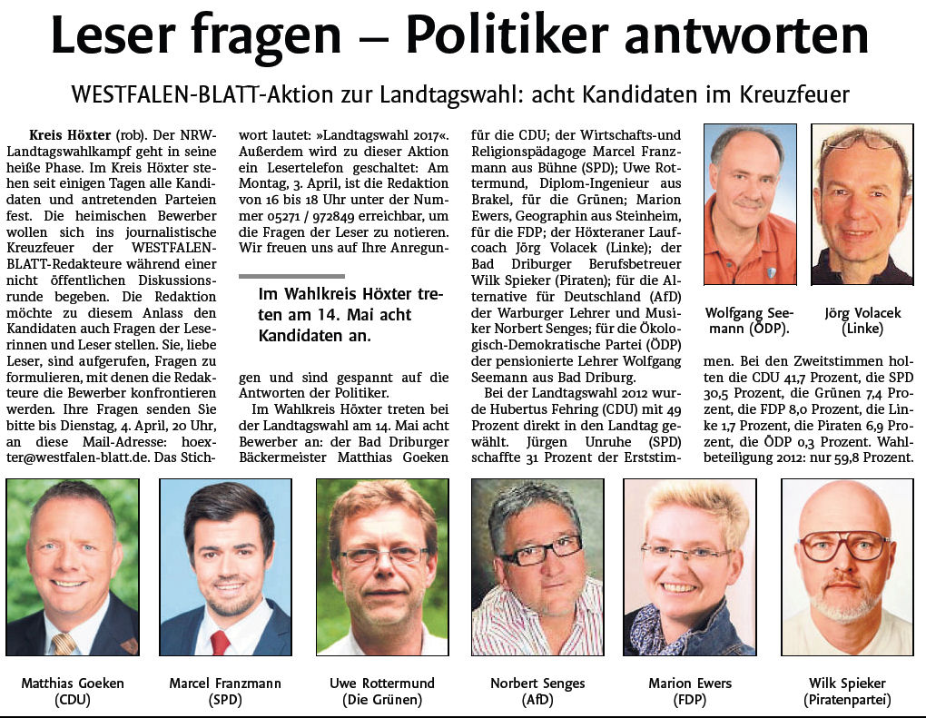 Im Sackmuseum Nieheim befragte das Westfalenblatt alle Landtagskandidaten zu Themen, die die Leser ausgesucht hatten. Zusätzlich wurde ein kurzer Video-Clip aller Bewerber aufgenommen. Photo: rmp.